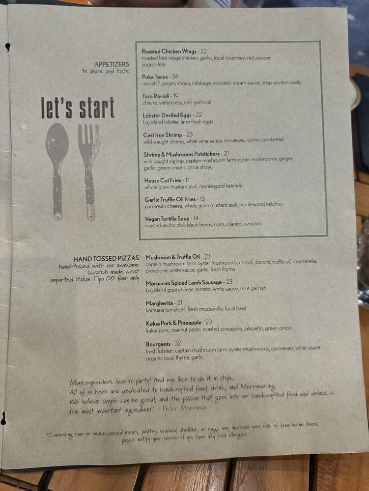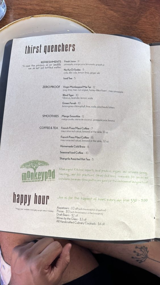 Monkeypod Kitchen offers a casual yet classy dining experience with Hawaiian influence, a full bar, live music, and a variety of vegan and vegetarian options. Located in Kapolei, HI, Monkeypod Kitchen boasts a vibrant atmosphere perfect for groups, families, and casual meals. The menu includes wood-fired pizzas, fresh salads, and appetizers like raw bar mixed plates and wood-roasted chicken wings. Customer reviews highlight the delicious truffle fries, flavorful fish tacos, and impressive cocktails, especially the Mai Tai. The ambiance, friendly staff, and happy hour specials add to the overall positive dining experience. Whether you're in the mood for a relaxing lunch, a lively evening, or a happy hour gathering, Monkeypod Kitchen provides a satisfying culinary journey.