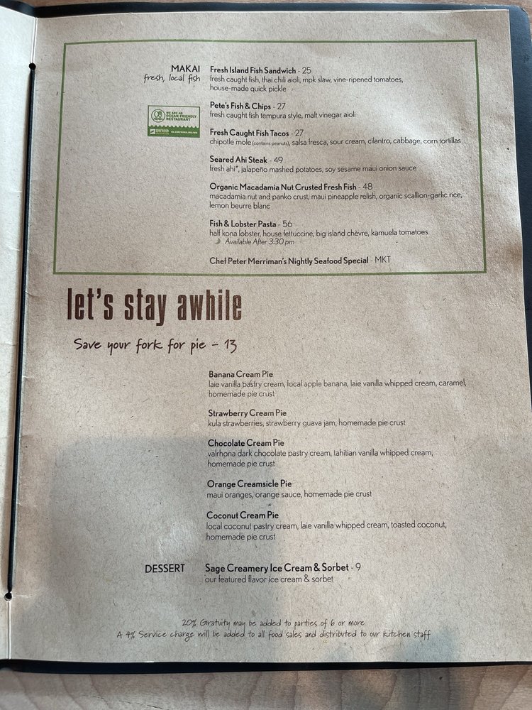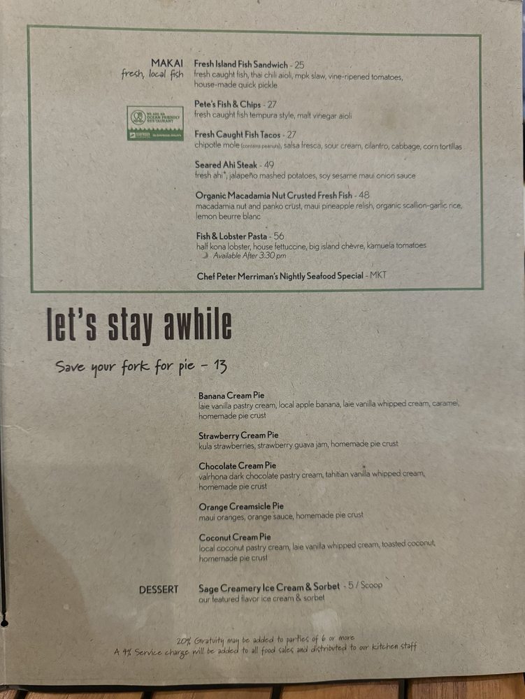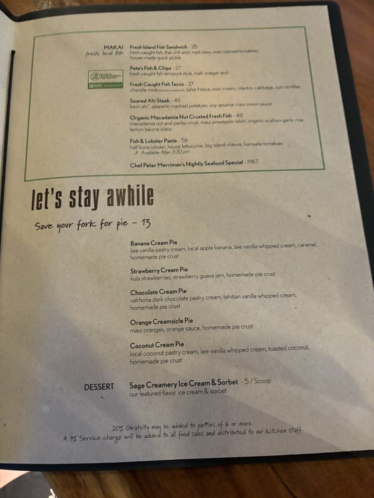 day boat ahi tuni, house-baked wheat bread, gruyere, thousand island, house-made quick pickle, kunia country farm bib lettuce, hau'ula farm tomato