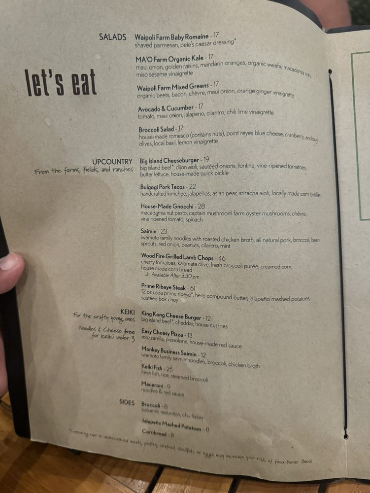 kalua pork, broccoli, green beans, bean sprouts, red onion, peanuts, organic local cilanto, organic local mint